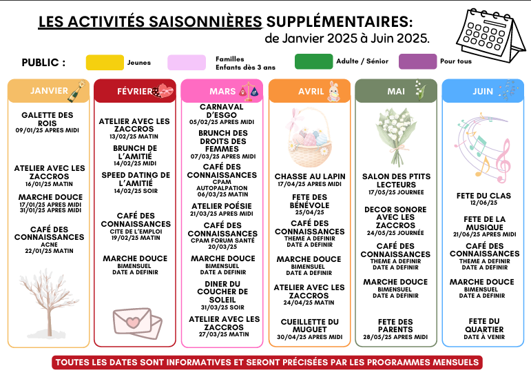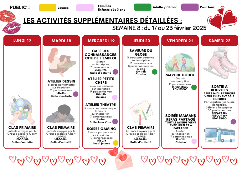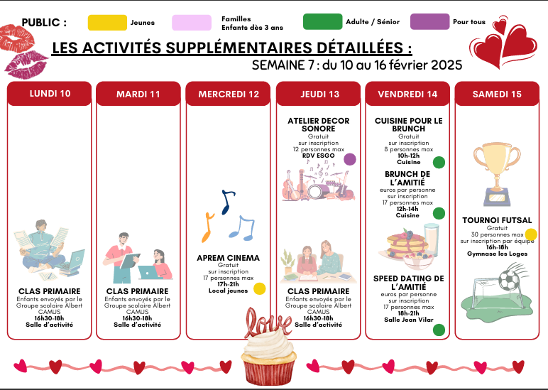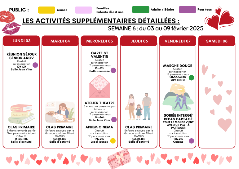 En outre, n’oubliez pas que les inscriptions pour toutes les activités restent obligatoires à l’accueil à partir du mardi 04 février 2025.